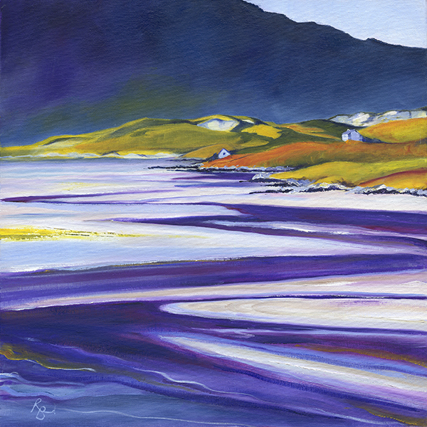 Ruth Bond2025-12-03T14:31:38+00:00Blueberry and Juniper Swirls, Luskentyre oil on canvas board 40 x 40 cm £1200 Each painting in this collection is based on a particular Harris Tweed swatch, the starting point limiting the pallet mixed from just these colours. As a result the landscapes resemble not just the purple, peaty rivers, vibrant turquoise of the seas, blindingly white [...]